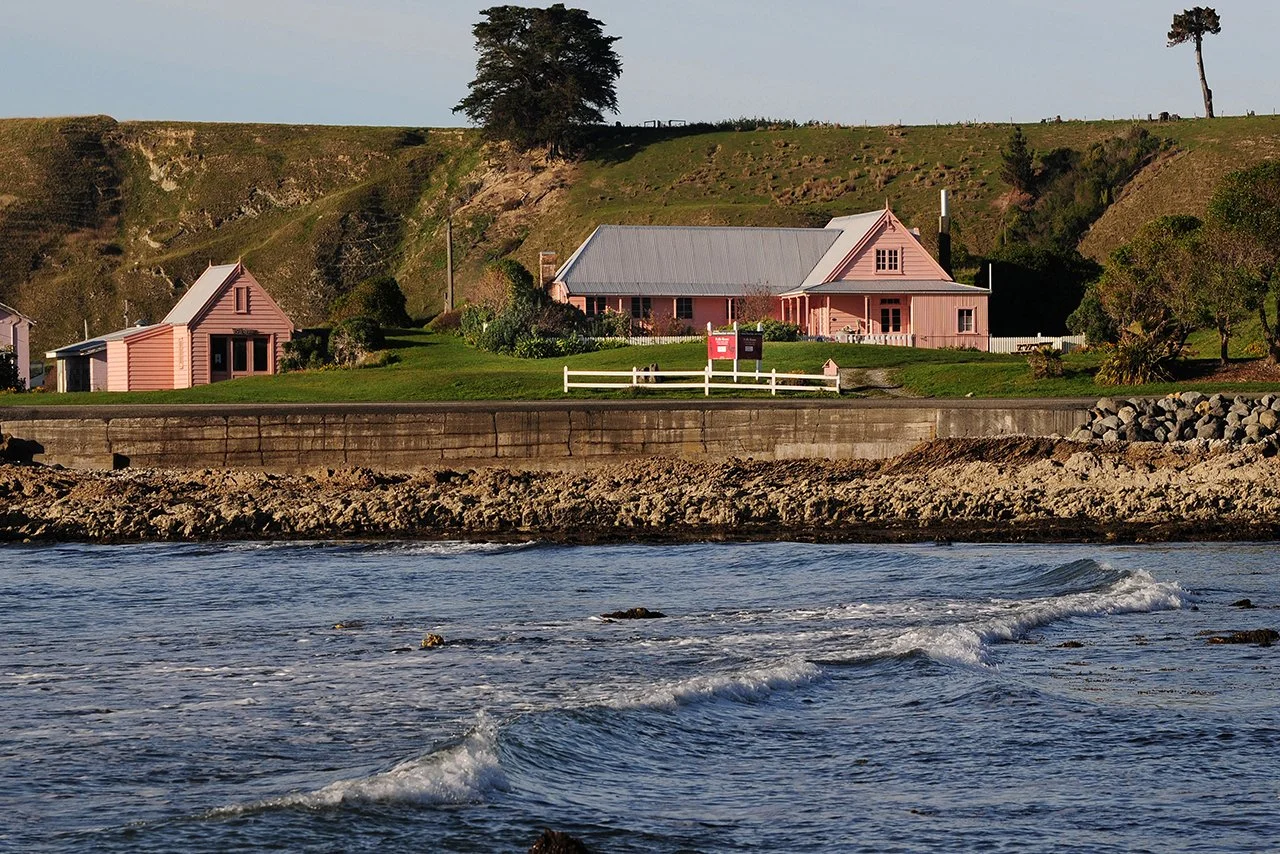Fyffe House was built on the back of whaling – the initial single-storey cottage rests on piles made from the vertebrae of a mighty Tohorā (Southern right whale). Kaikōura’s pink heritage building, and the land it occupies, has a history that is centuries deep, dating from the arrival of tangata whenua.